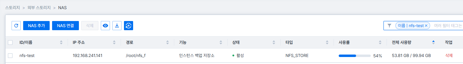 - 볼륨 저장소: NAS를 인스턴스 볼륨 저장소로 사용. 볼륨 또는 인스턴스 생성 시, NAS를 볼륨 타입으로 선택 가능.